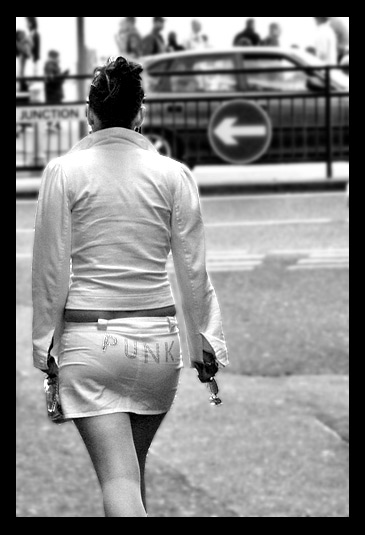 I love this photo – I guess its the juxtaposition with the road sign that’s pointing at her… like she wasn’t already drawing enough attention! I’ve posted this here before, in colour, but I think it works pretty well in B&W too.